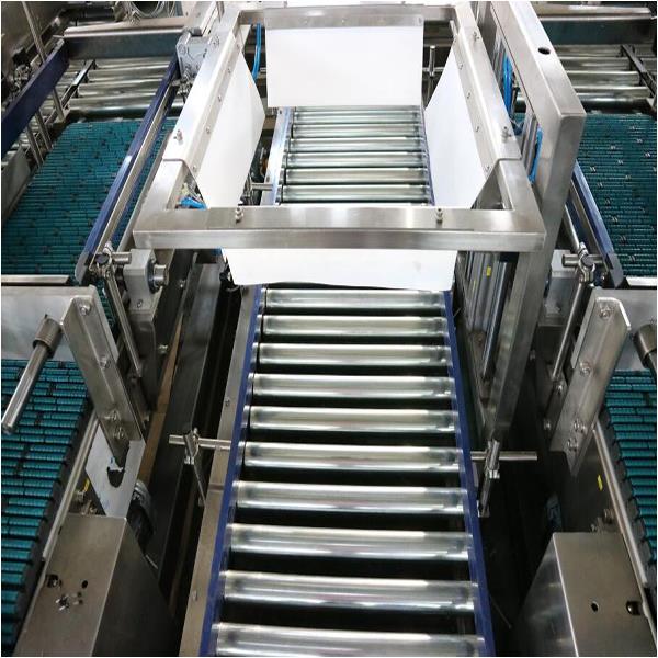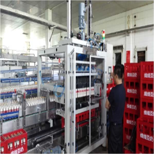 設(shè)備用于光明禮品的包裝線,將禮品包編組放置到大箱中。能夠同時支持兩臺禮品包包裝機(jī)。機(jī)械手完成裝盒動作之后,可以根據(jù)禮品包的進(jìn)入通道,將大箱切換到相應(yīng)的輸送線上。